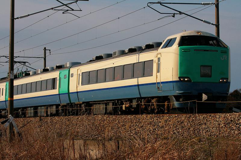 トワイライトエクスプレスの運行時間が変更になり、昼の時間帯の通過は今日で最後。9時半頃より東富山から常願寺川の間で撮影場所を探しうろうろする。何とか高志病院の西側の線路沿い(道正の農道)にカメラをセットして通過を待つ。