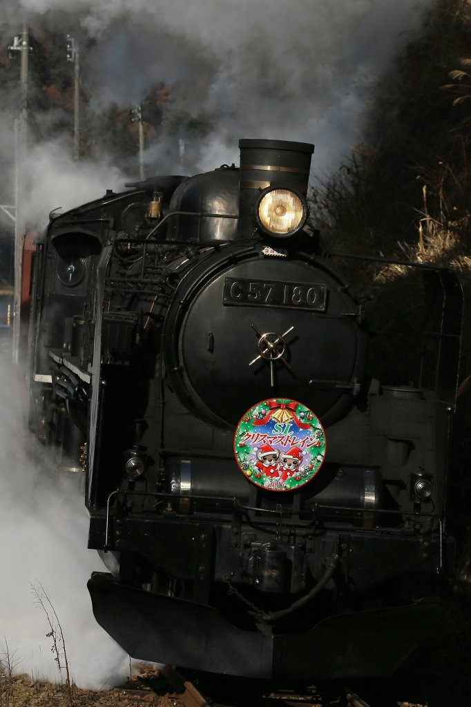 磐越西線に「SLばんえつ物語」号、クリスマストレイン専用のヘッドマークを付け、新潟・会津若松間を走った。