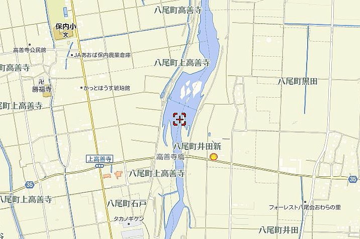 高善寺橋の下流に農業用水を取り込むための堰が有り、川幅が広くなっている。川の流れが緩やかになためか、水鳥たちの休憩場所になっている。